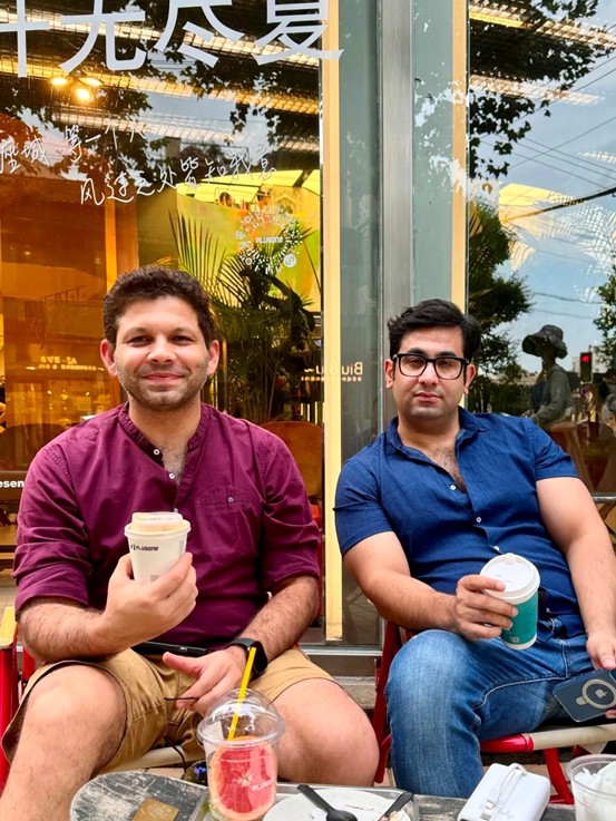 来自巴基斯坦的塞尔曼和胡塞品尝着加水果的拿铁,认为上海的咖啡创新意识难得一见 图片来源:TheBund