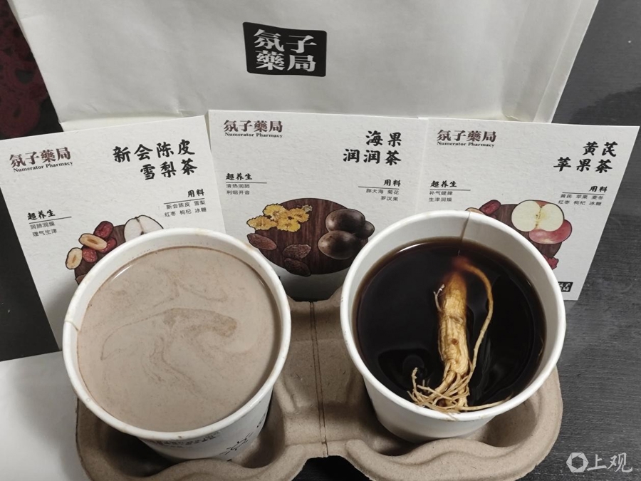 灵芝拿铁和人参美式(右)